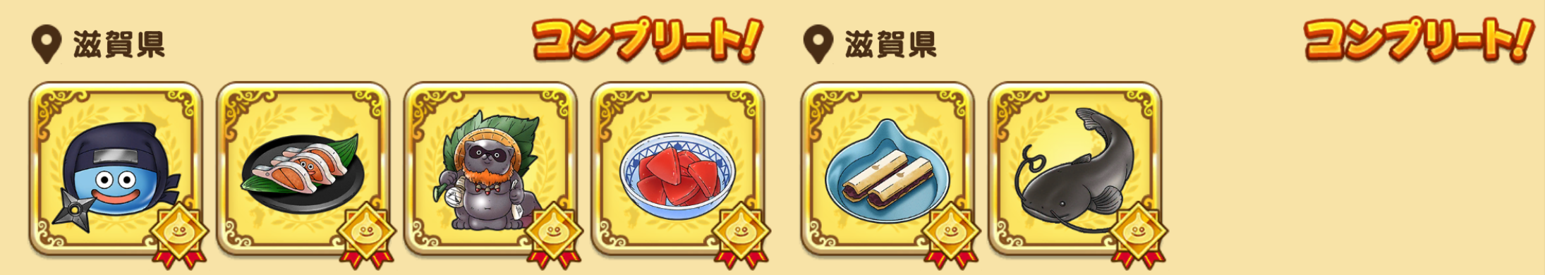 スクウェア・エニックスのiOS/Android用アプリ「ドラゴンクエストウォーク(DQW)」のおみやげ・おでかけ(シーズン1&2)で、滋賀県を自力コンプリート達成しました!(  ̄▽ ̄)ノ 5府県目!