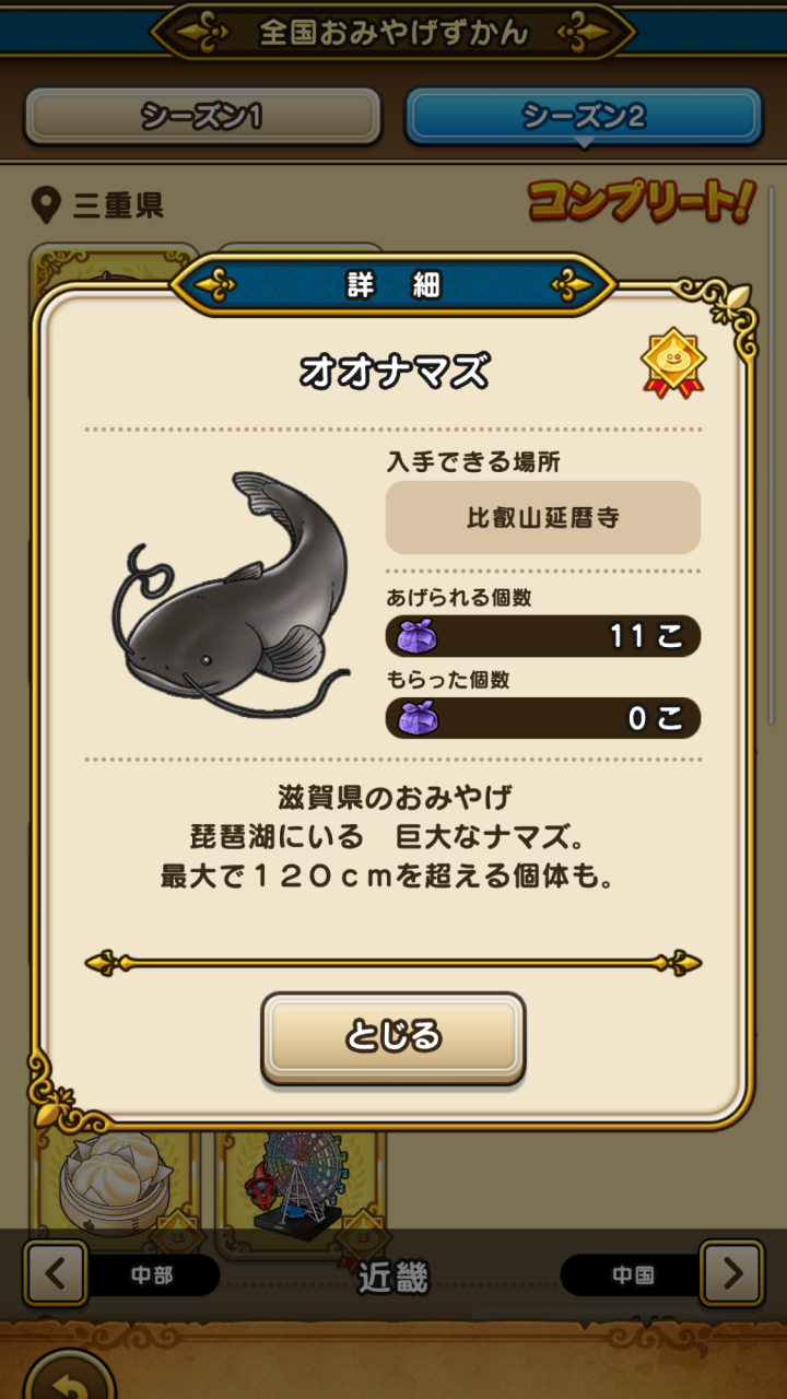 [スマホ]DQW : おみやげ・おでかけ – 滋賀県自力コンプ達成!(シーズン1&2 - 5/47)
